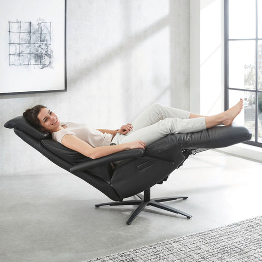 Relaxsessel inkl. Hocker "MRS 715" mit Liegeposition Leder schwarz