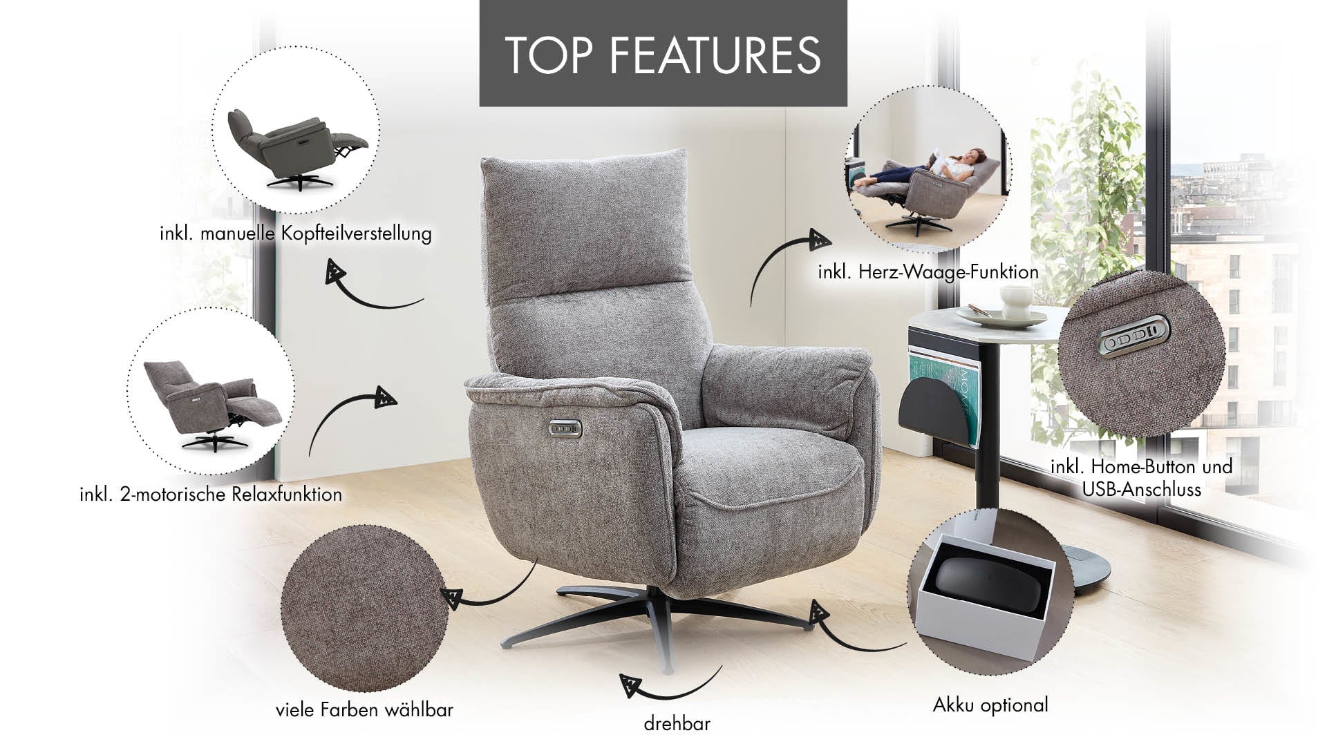 Grundsätzlich haben Sie auf all unsere Produkte einen 2 Jährigen Gewährleistungsanspruch.Darüber hinaus bieten wir Ihnen die Möglichkeit, eine Garantie über 5 Jahre zu erhalten.Diese beinhaltet folgendes:Der Fleckschutz garantiert für volle 5 Jahre, dass ihr neuer Sessel fleckenfrei ist und bleibt (z.B Bier, Schokolade und Rotwein bei Leder z.B. Zusätzlich Nagellack, Jeansabrieb uvm.).Alle Funktionen, Motoren und Akkus sind ebenfalls in der Garantie inklusive.Sollte der Sessel eine übermäßige Faltenbildung, der Sitzkomfort übermäßig weich werden oder der Sessel fängt an zu quietschen: All dies ist u.A in der 5 Jahres Garantie enthalten.Bei Leder erhalten Sie zusätzlich Pflegeprodukte für 5 Jahre.Die 5 Jahres Garantie können Sie im Warenkorb hinzubuchen WICHTIG,: Es fallen nur einmalig, transparente Kosten an! Keine versteckte Kostenfalle.